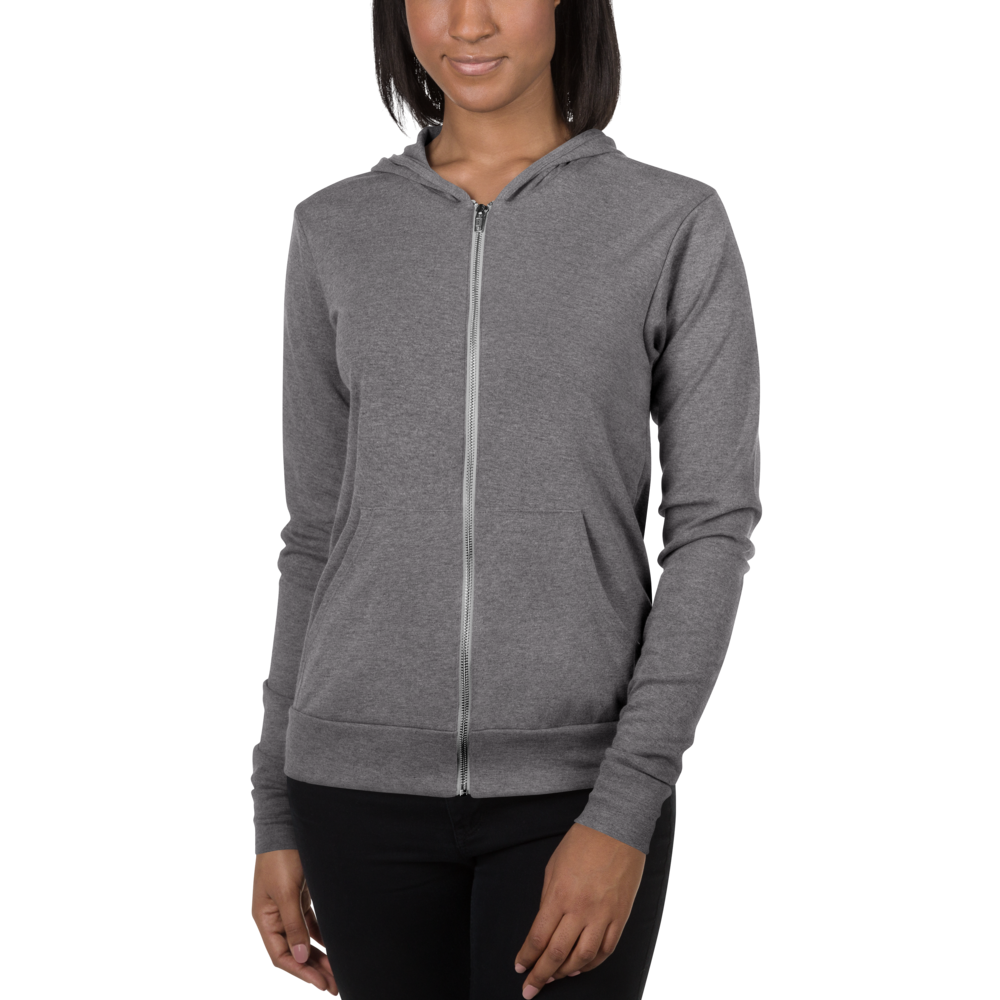 For when you get chilly on a summer evening by the lake, or simply need something comfy to throw on, this lightweight unisex zip hoodie with a modern fit, hood, front zip, and a kangaroo pocket is the way to go.